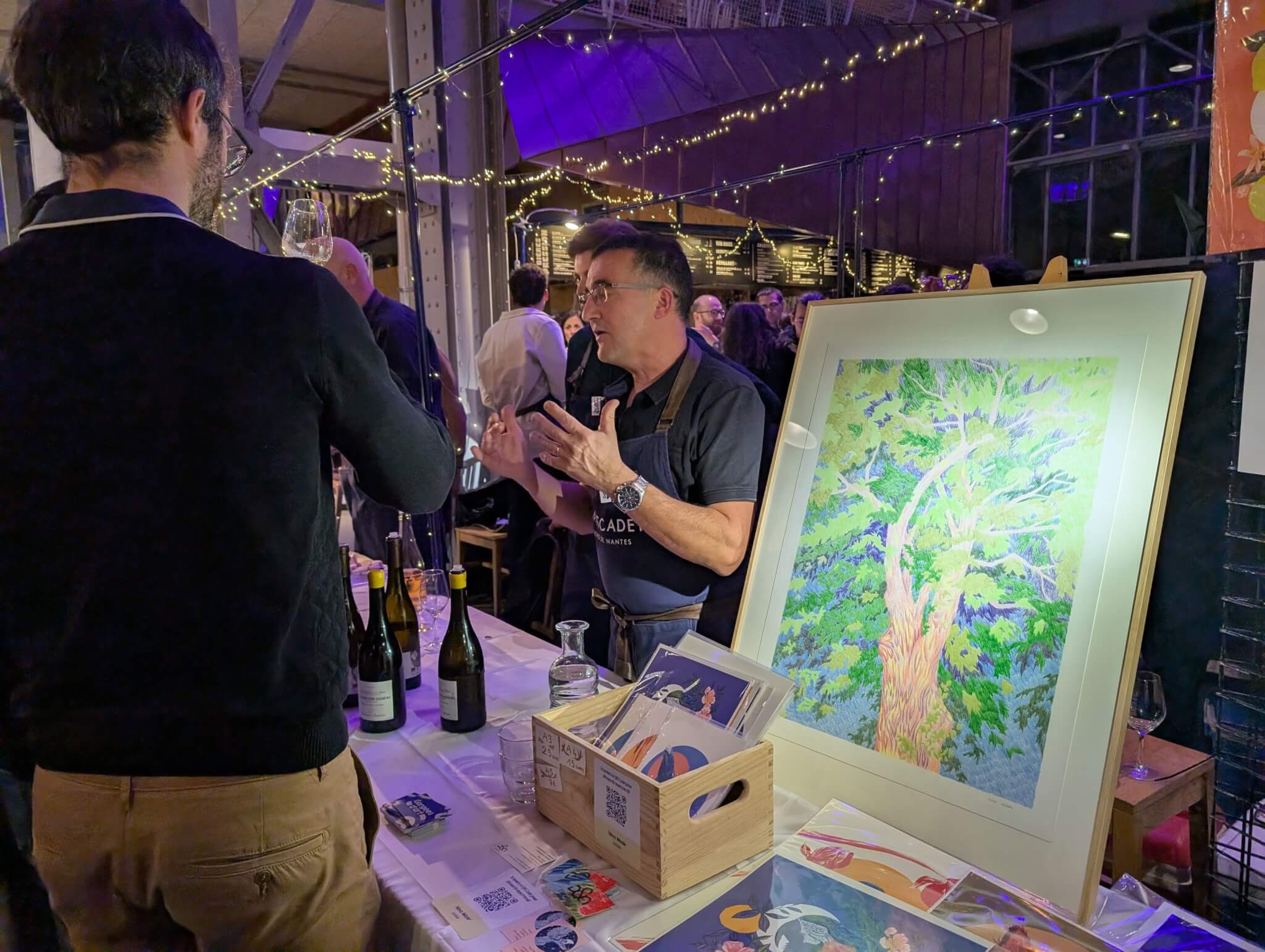 Les vignerons de l’association qui porte la démarche de reconnaissance en Dénomination Géographique Complémentaire La Haye-Fouassière organisaient leur première opération grand public le 28 novembre au food-hall Magmaa à Nantes. Une première réussie ! L’événement « Gorgées d’art » associait 5 artistes locaux à 10 domaines, les premiers exposant des œuvres inspirées des visites des domaines et les second proposant leurs appellations communales à la dégustation. 250 verres ont été vendus à un public principalement de Nantais, connaisseur du Muscadet mais pas forcément de la démarche des communales. Une vente aux enchères de barriques customisées par l’artiste Pedro a également séduit le public. Les vignerons de La Haye-Fouassière souhaitent désormais que l’événement s’inscrive dans la durée.
